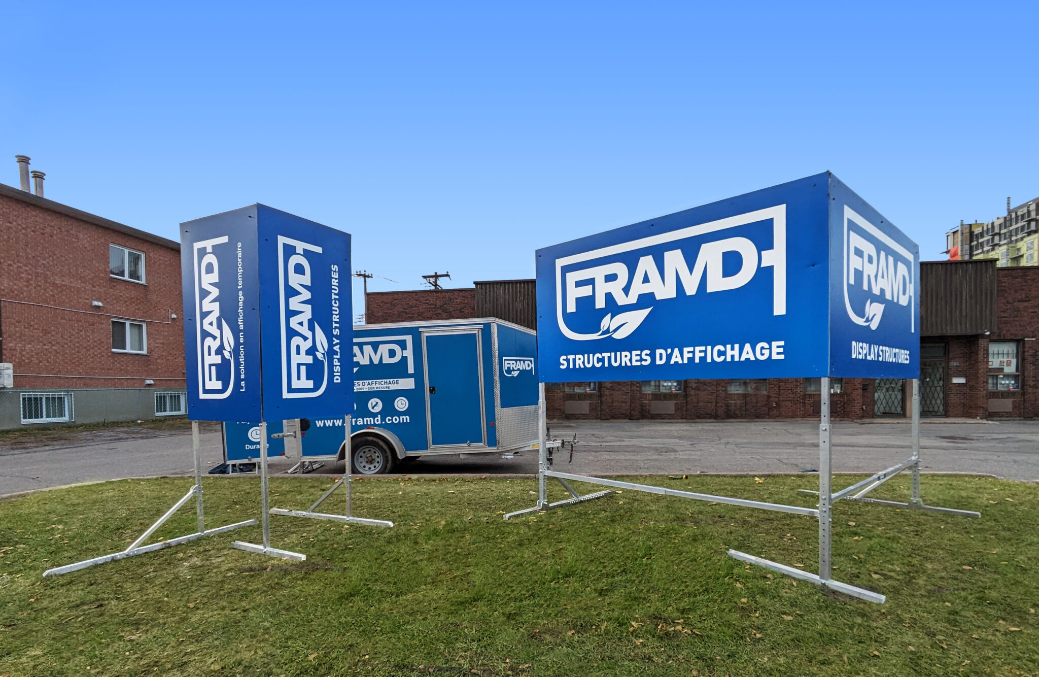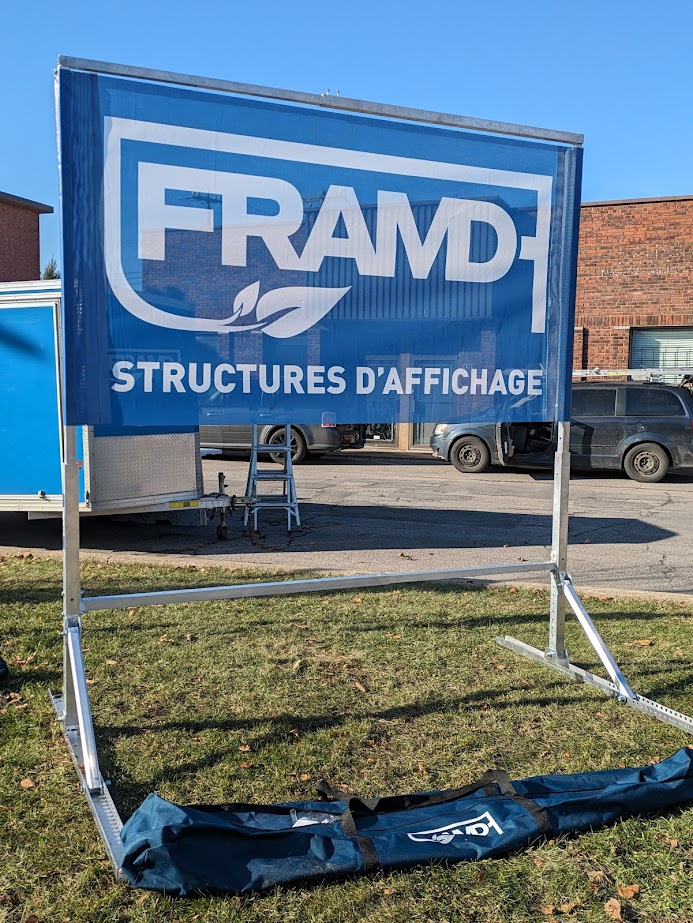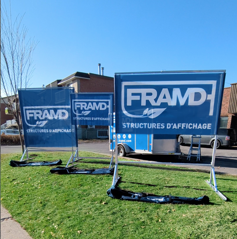 Chez FRAMD, nous concevons et fabriquons des structures d’affichage grand format alliant robustesse, esthétique et simplicité d’installation. Nos solutions sont pensées pour s’adapter à tous les besoins, que ce soit pour une utilisation temporaire ou permanente.